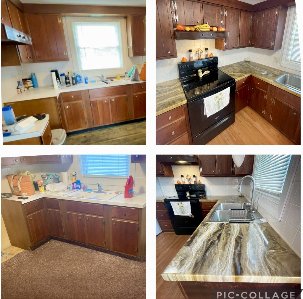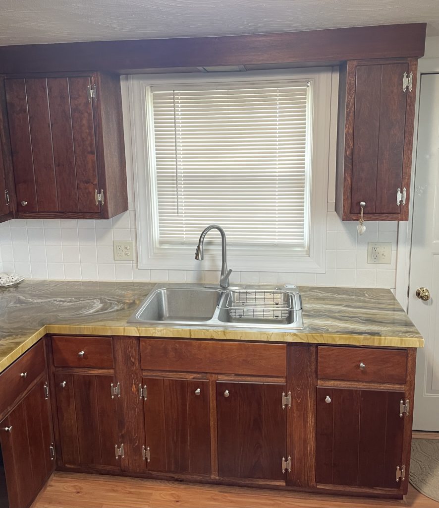 Complete Cabinet Restoration, New Sink, Plumbing, & Flooring!